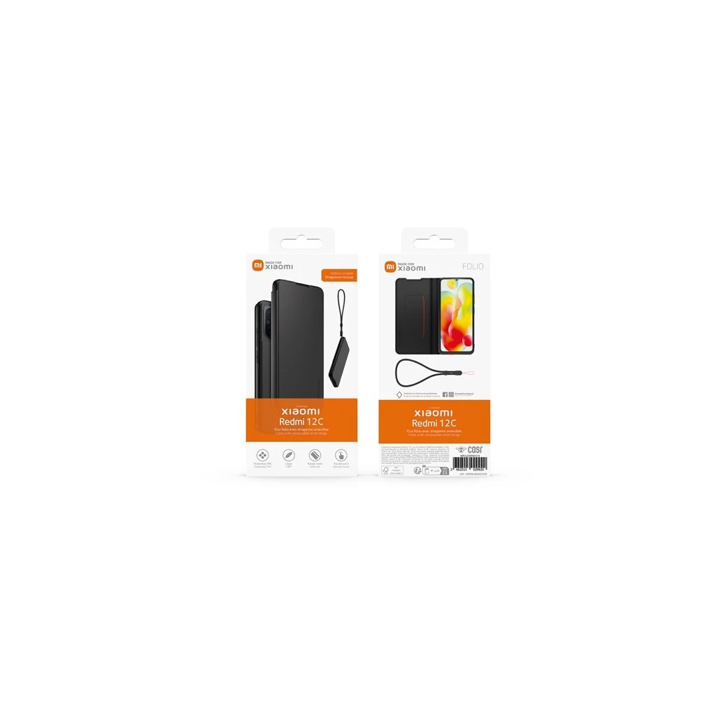 Made for Xiaomi füzet tok nyaklánccal Xiaomi Redmi 12C készülékhez fekete